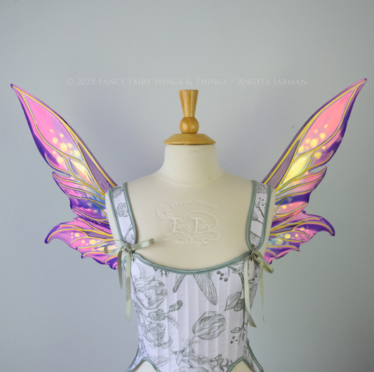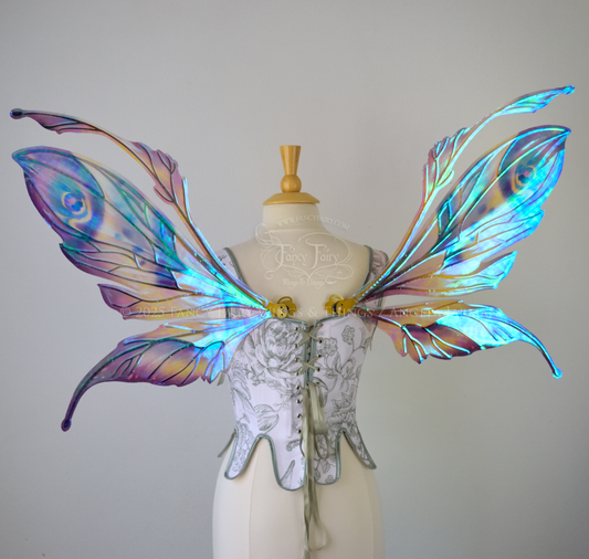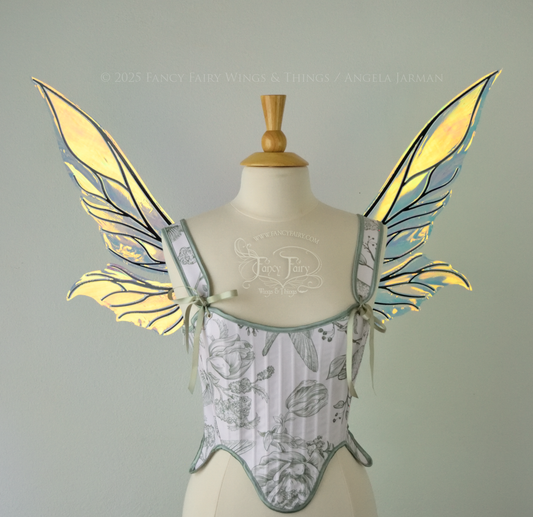 Ready to Ship Lilian Iridescent Convertible Fairy Wings in 'Iris" with Gold Veins