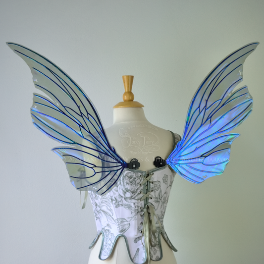 Ready to Ship Lilian Iridescent Convertible Fairy Wings in Baby Blue with Gold Veins