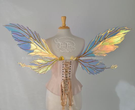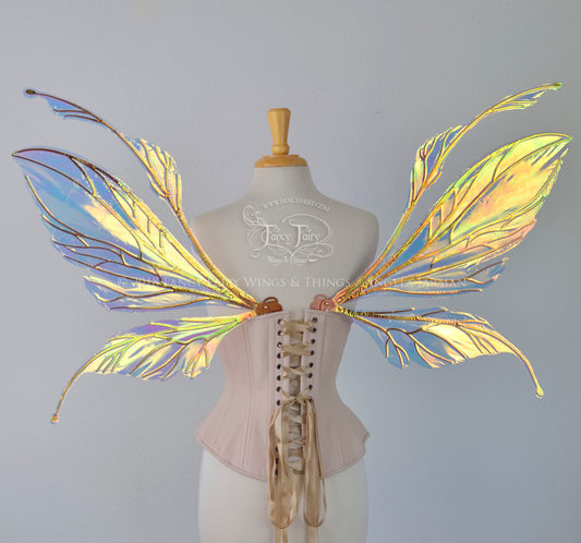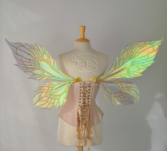 Ivy Iridescent Convertible Fairy Wings in Clear Diamond Fire with Gold veins