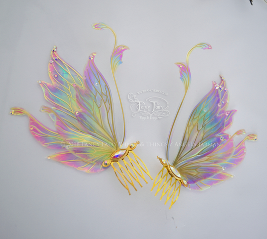 Fauna Iridescent Convertible Fairy Wings and Winged Hair Comb set in Opal Rainbow with Swarvski Crystals