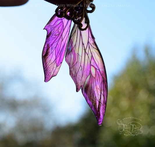 Colette 'Grape' Resin Iridescent Fairy Wing Earrings With Brass Filigree