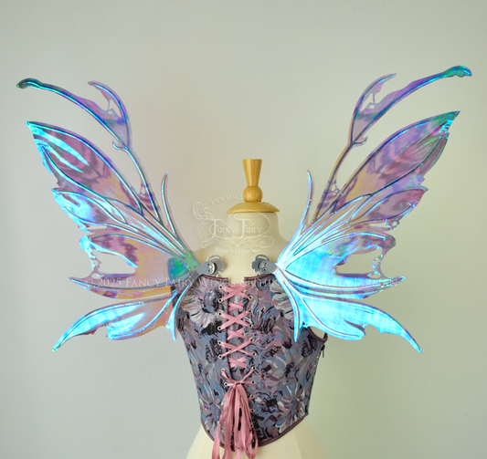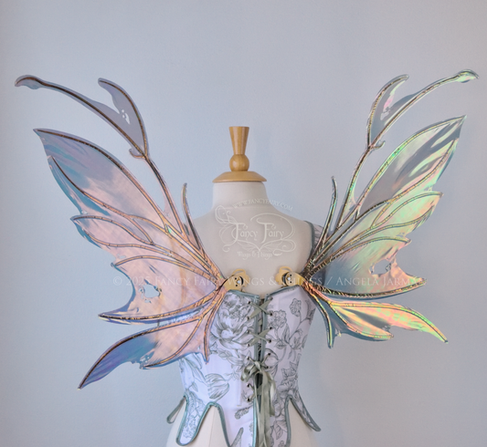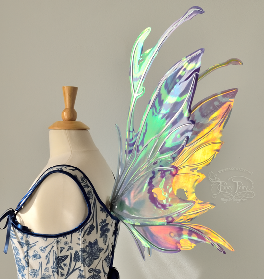 Made to Order Fayette Convertible Iridescent "Pix" Painted Fairy Wings with Silver Veins