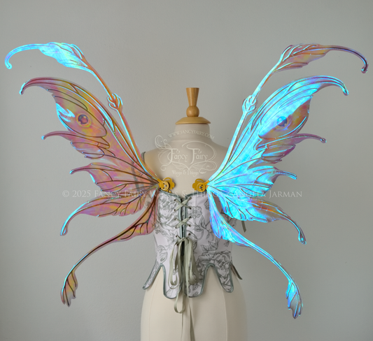Aynia "Iris" Painted Convertible Iridescent Fairy Wings with Black Veins, Ready to Ship
