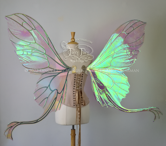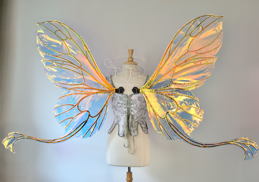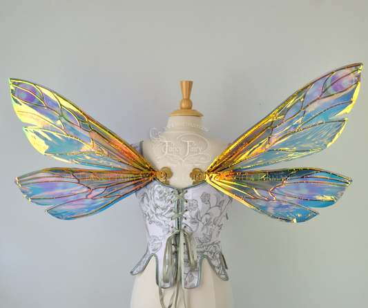 Ellette Convertible Iridescent Fairy Wings in Water Lily with Gold Veins, Ready to Ship