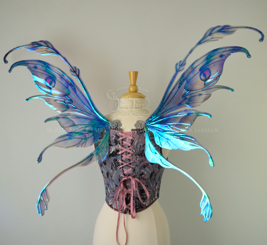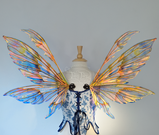 Aynia "Starry Night" Painted Convertible Iridescent Fairy Wings with Black Veins, Ready to Ship