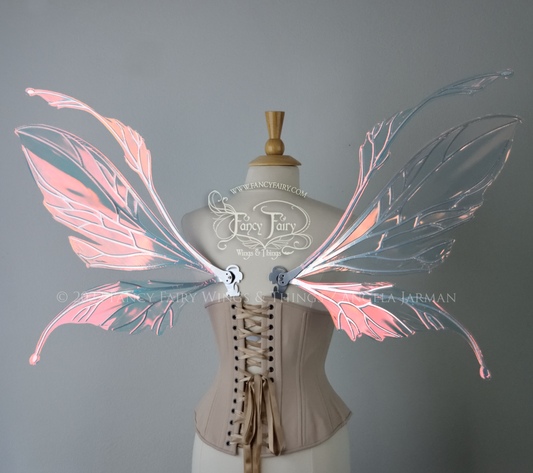 Datura Iridescent Convertible Fairy Wings in Clear Blush with Silver veins, Ready to Ship