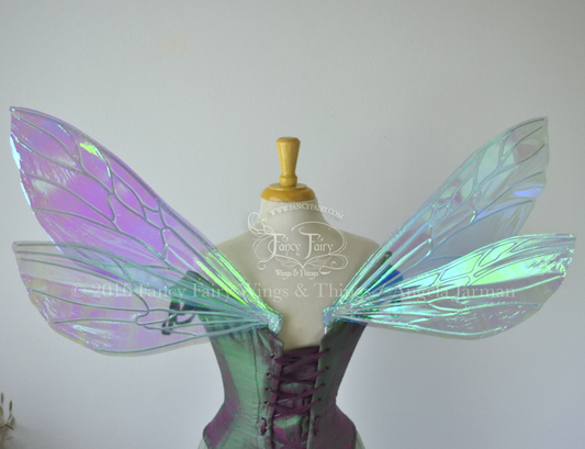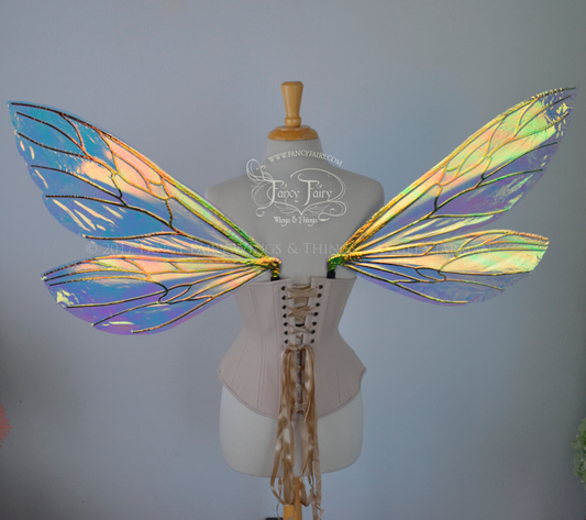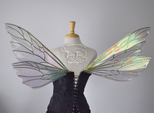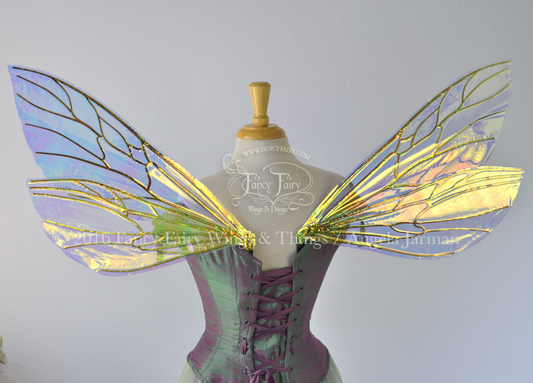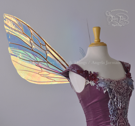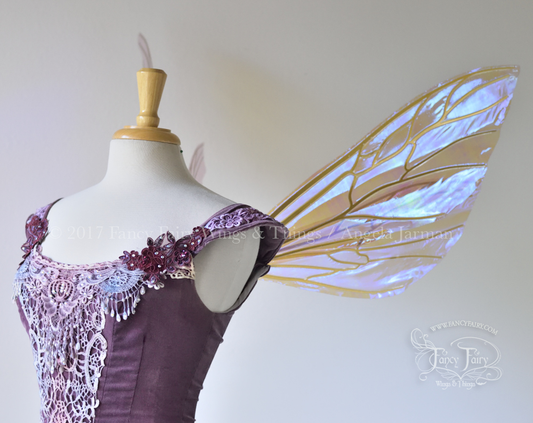 Ellette Convertible Iridescent Fairy Wings in Water Lily with Gold Veins, Ready to Ship