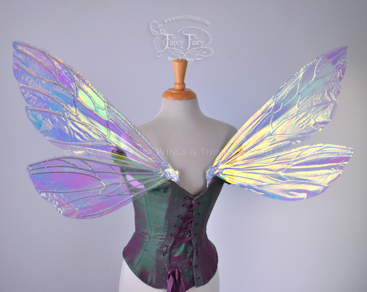 Ellette Iridescent Fairy Wings in Clear Diamond Fire with Pearl veins
