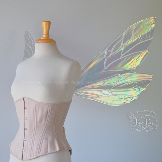 Ellette Iridescent Fairy Wings in White Satin with Chrome veins