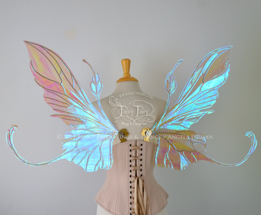 Elvina Iridescent Convertible Fairy Wings in Opal with Candy Coat Gold veins