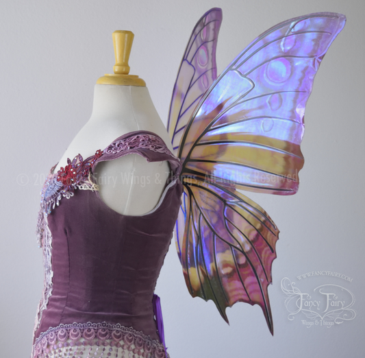 Gertrude Painted Iridescent Butterfly Fairy Wings in Purples with Black veins