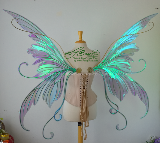 Giant Amy Brown Bubble Rider Iridescent Convertible Fairy Wings in Aquamarinewith Silver Veins