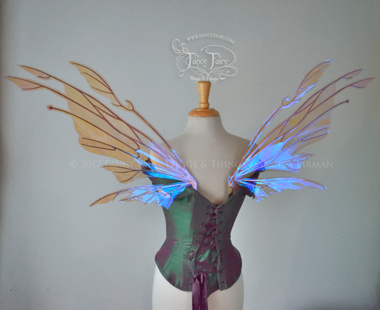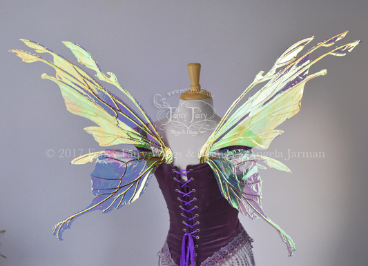 GIANT Pansy Gwen Iridescent Convertible Fairy Wings in Aurora with Gold veins