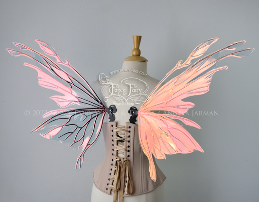 Goblin Princess Convertible Iridescent Fairy Wings in Blush with Black Veins