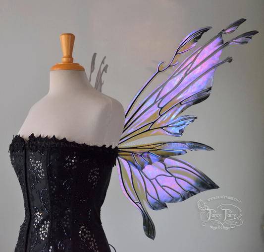 Goblin Princess Convertible Iridescent Fairy Wings in Ultraviolet with Black Veins, Ready to Ship