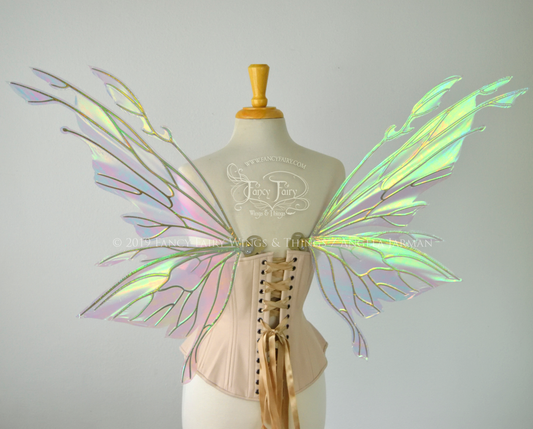 Goblin Princess Convertible Iridescent Fairy Wings in Opal with Pearl Veins