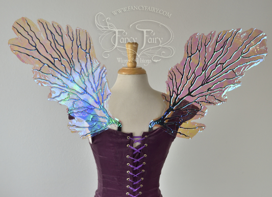 Gothic Sea Fan Iridescent Fairy Wings in Iridescent Lilac with black veins