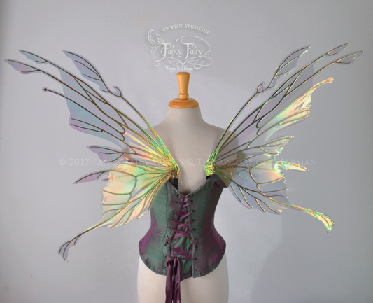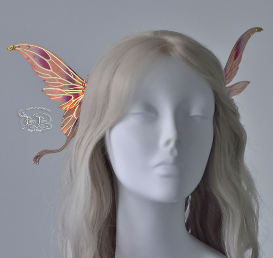 Goblin Princess New Convertible Iridescent Fairy Wings in Rose Gold with Chameleon Cherry Violet Veins