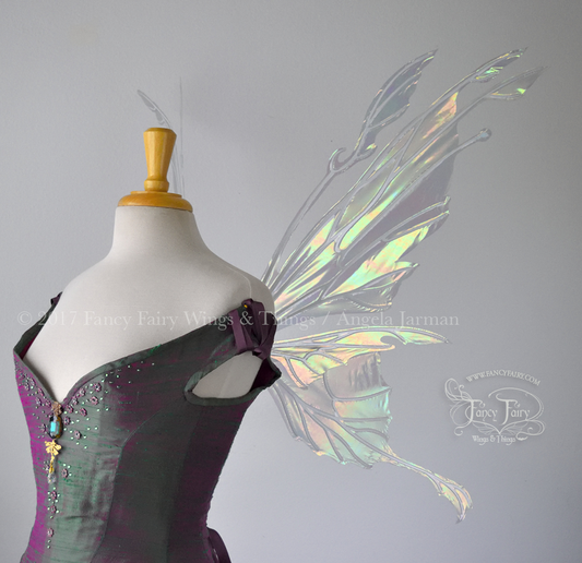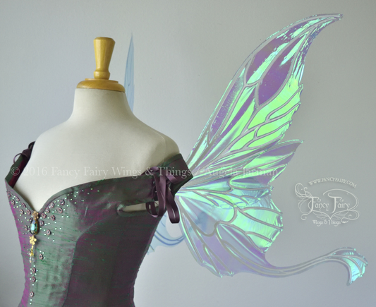 Goblin Queen Iridescent Fairy Wings in Patina Green with Pearl Veins