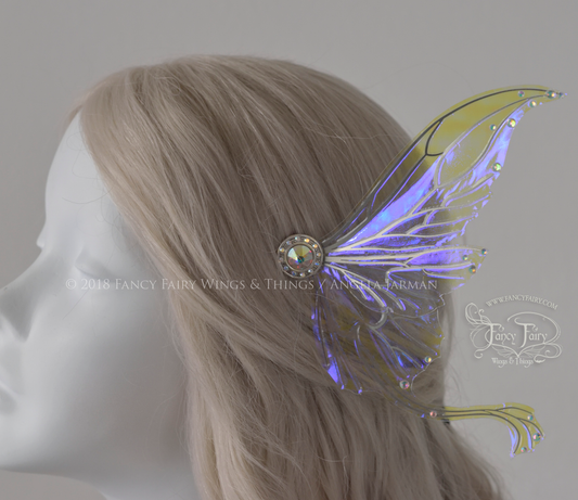 Guinevere 5 inch Fairy Wings Hair Pins in Iridescent Ultraviolet with Silver Veins