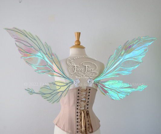 Ivy Iridescent Convertible Fairy Wings in Absinthe with white veins