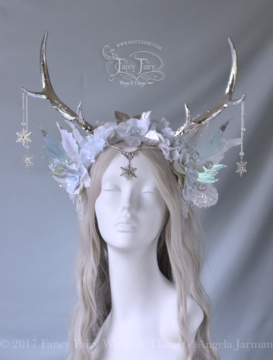 Ice Blue and Silver Winter Faun Fairy Headdress