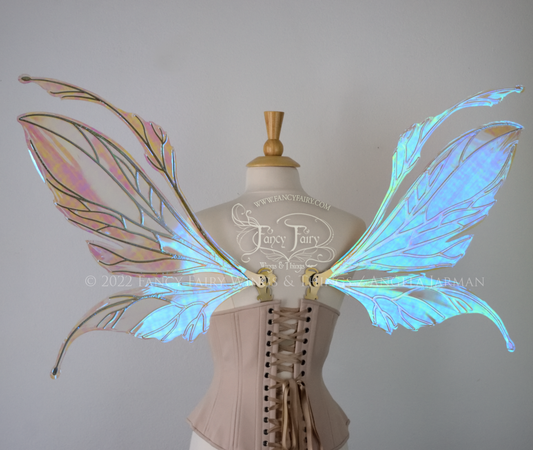 Made to Order Colette Convertible Iridescent Fairy Wings in Opal with Gold Veins, Simplified version