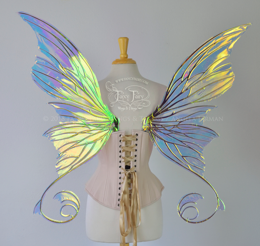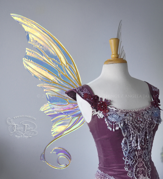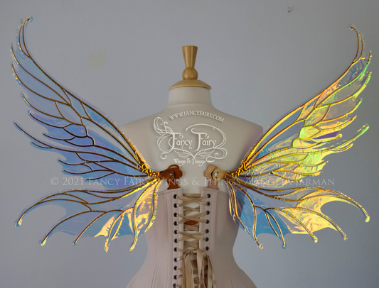 Aphrodite Iridescent Fairy Wings in Clear Diamond Fire with Gold Veins