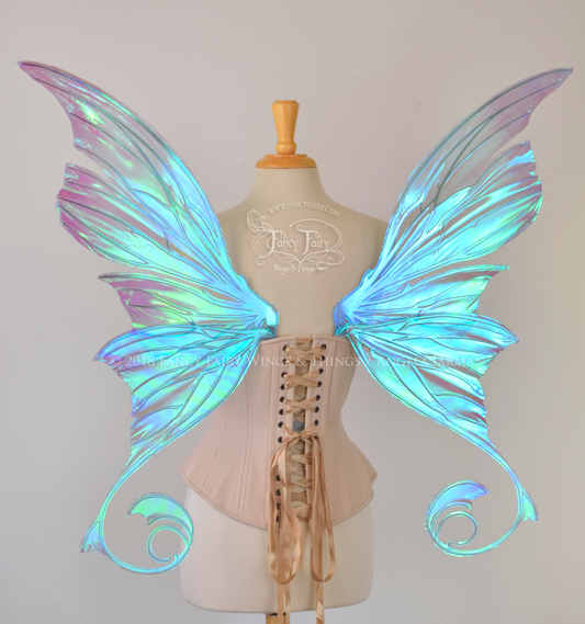 Aphrodite Painted Iridescent Fairy Wings in Ocean Dream with Chrome Silver Veins
