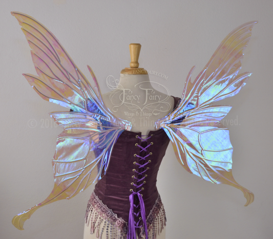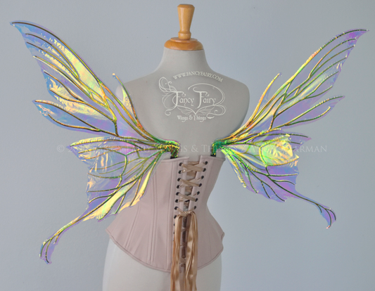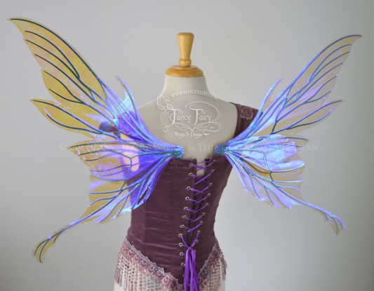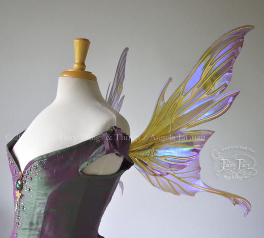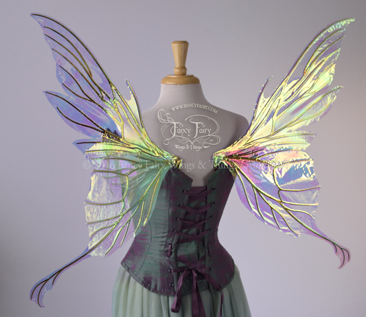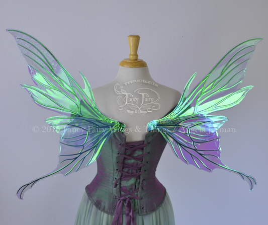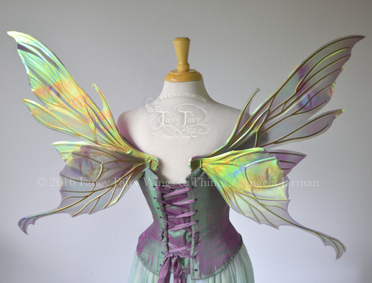 Morgana Painted Iridescent Fairy Wings in Lavender and Green with Gold Veins
