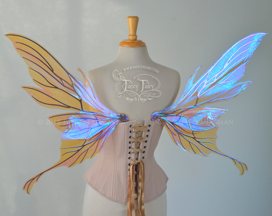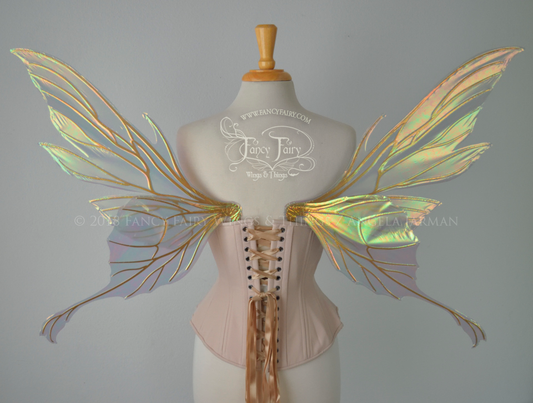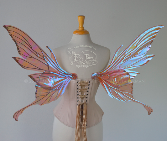 Morgana Iridescent Fairy Wings in Clear Diamond Fire with Copper Veins