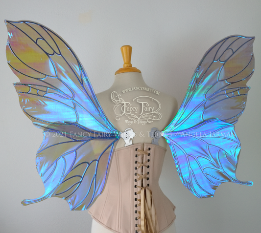 Pre-Order Pansy Iridescent Convertible Fairy Wings in 'Water Lily' with Black Veins (Imperfect)