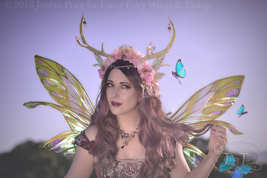 Pansy Iridescent Convertible Fairy Wings in Rose Gold with Candy Gold veins