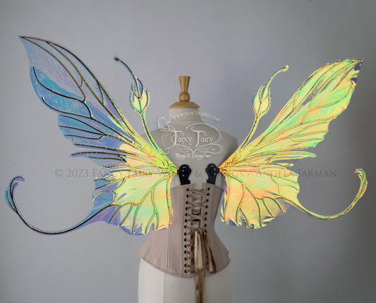 Ready to Ship Fauna Iridescent Convertible Fairy Wings in 'Pastel Rainbow' with Gold Veins