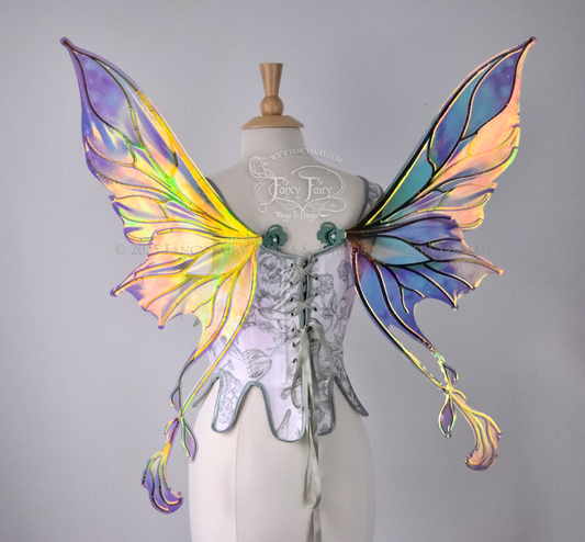 Ready to Ship Lilian Iridescent Convertible Fairy Wings in 'Iris" with Gold Veins