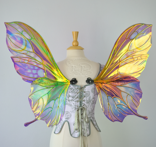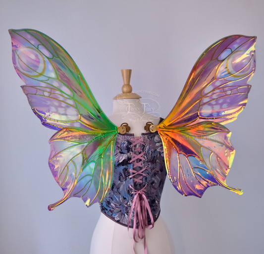 Ready to Ship Pansy Iridescent Convertible Fairy Wings in 'Iris' with Gold Veins