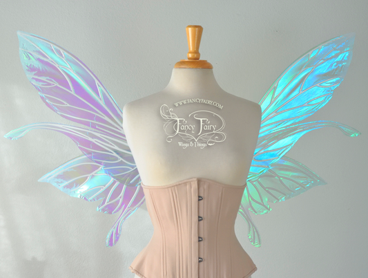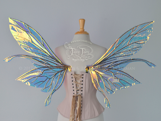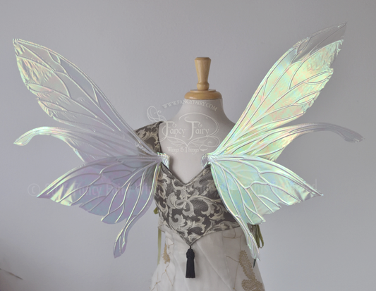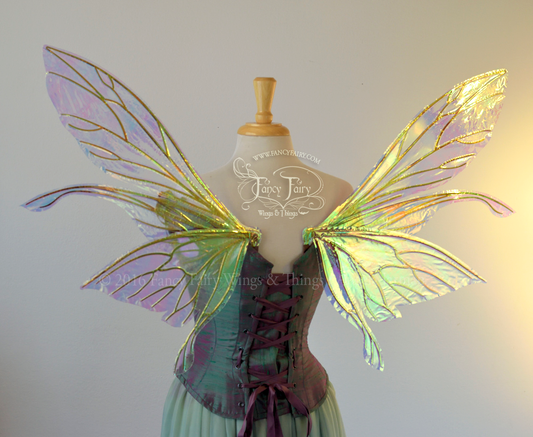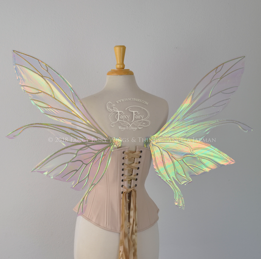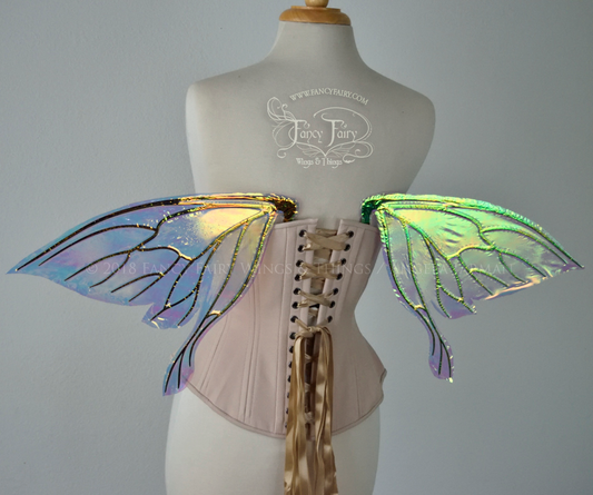 Salome Iridescent Fairy Wings in White Satin with Candy Coat Gold Veins