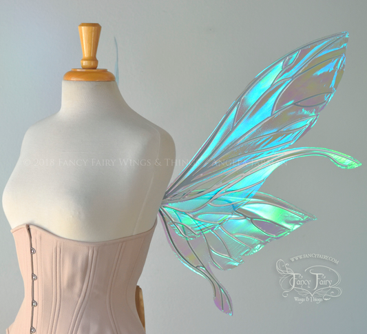 Salome Guinevere Hybrid Iridescent Fairy Wings in Aquamarine with Pearl Veins