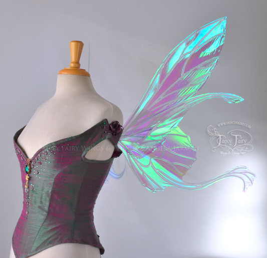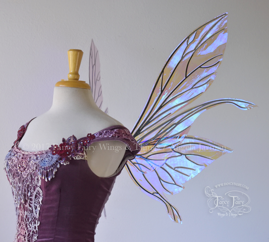 Salome Iridescent Fairy Wings in Clear Diamond Fire with Black Veins