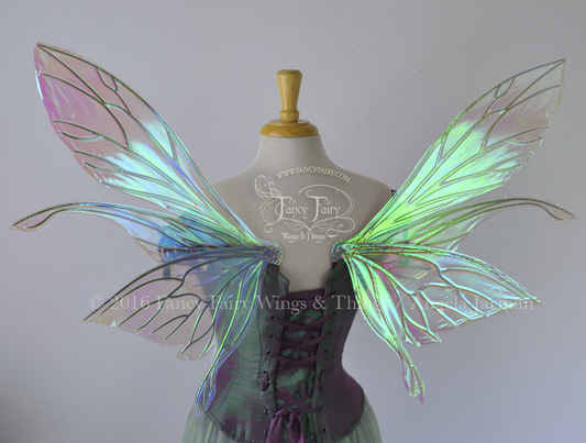 Salome Iridescent Fairy Wings in Patina Green with Pearl Veins