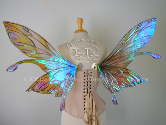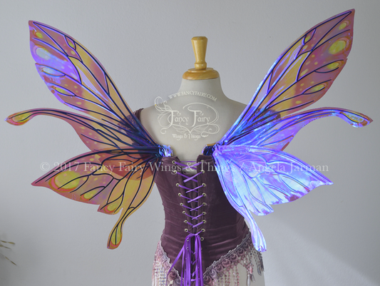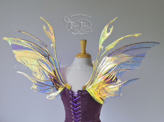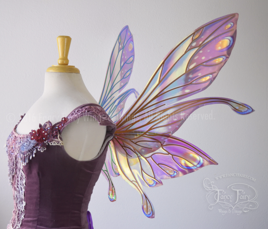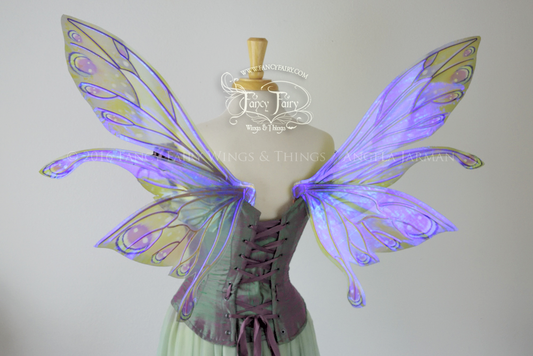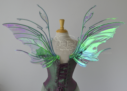 Salome Painted Iridescent Fairy Wings in Green & Purple with Gold Veins *Previously worn