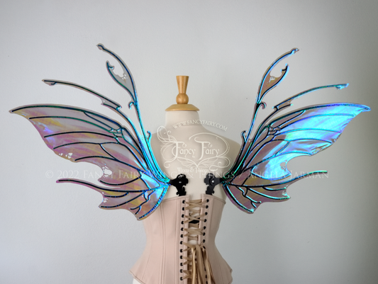 Scythe Iridescent Fairy Wings in Dark Crystal with Black Veins, Ready to Ship