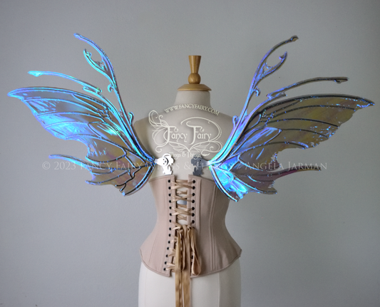 Scythe Iridescent Fairy Wings in Dark Crystal with silver Veins, Ready to Ship