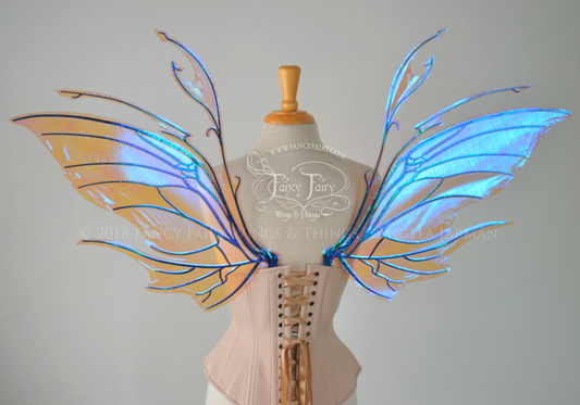 Scythe Iridescent Fairy Wings in Blue with Black Veins