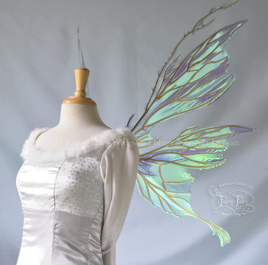 Thistle / Morgana Hybrid Iridescent Fairy Wings in Aquamarine and Gold Veins