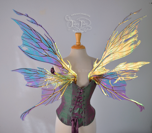 Stellar Salome Painted & Gilded Iridescent Fairy Wings & Matching Winged Hair Combs