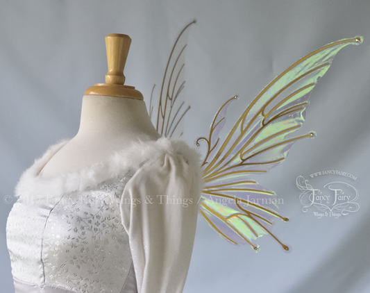 Small Flora Iridescent Fairy Wings in Satin White with Gold veins and Swarovski Accents