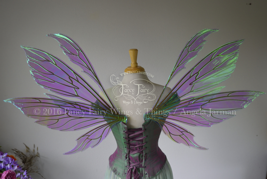 Aynia "Twilight Aurora" Painted Convertible Iridescent Fairy Wings with Silver Veins, Ready to Ship