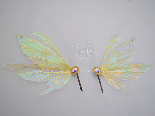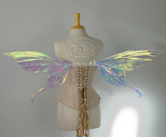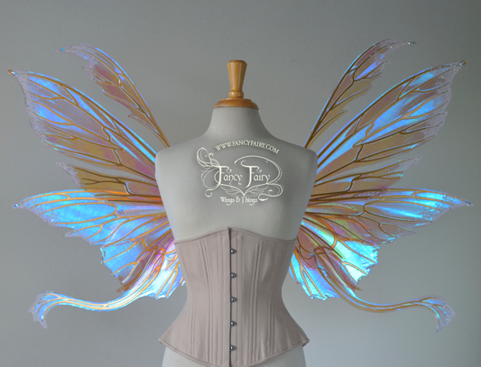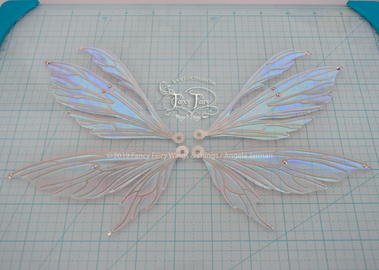 Aynia / Morgana Hybrid Iridescent Fairy Wings in Clear Diamond Fire with Pearl veins
