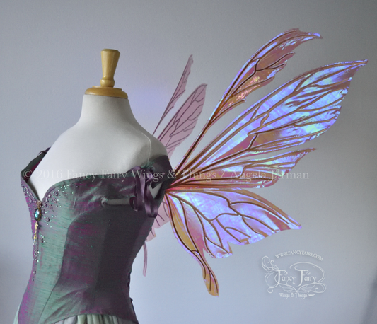 Aynia "Water Lily" Painted Convertible Iridescent Fairy Wings with Copper Veins, Ready to Ship (Copy)